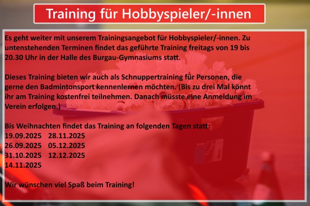 Samstag geht es endlich wieder los mit Badminton. Unsere Mannschaften sind schon heiß auf die neue Saison. Die erste Mannschaft schlägt wieder in der Bezirksliga auf, die Spielgemeinschaft erneut in der Kreisliga und dann gibt es in dieser Saison wieder eine U19 Mini-Mannschaft.