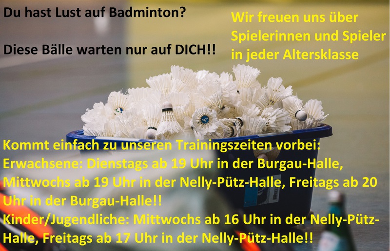 Du hast Lust auf Badminton?, Möchtest in einer Mannschaft spielen?, Möchtest neue Freundschaften schließen? oder einfach nur etwas für deine Fitness tun?