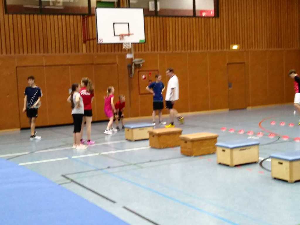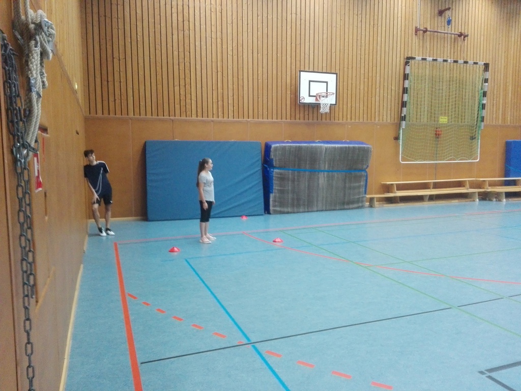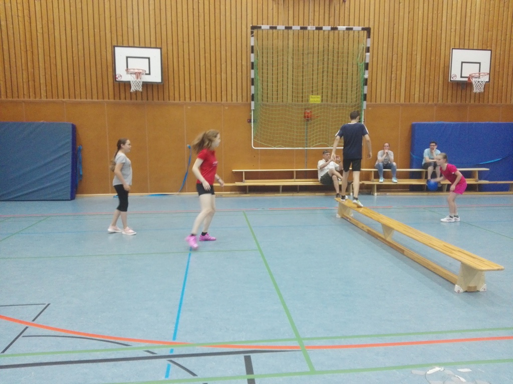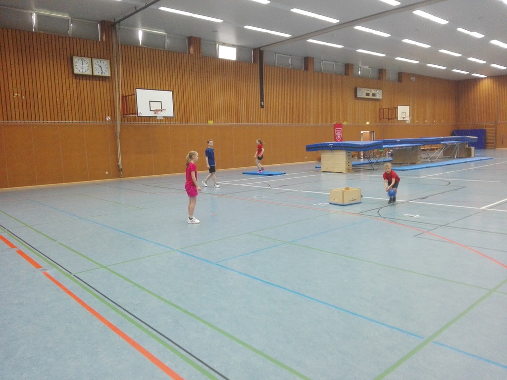 Zum warmwerden wurde eine Partie Brennball gespielt. Jede Gruppe bekam insgesamt fünf Minuten Zeit so viele Punkte wie möglich zu sammeln und wurde dabei von Jonas Mohr unterstützt. Beide Gruppen wollten unbedingt gewinnen, doch am Ende gewann die Gruppe knapp, die mit den kleinsten bestückt war.