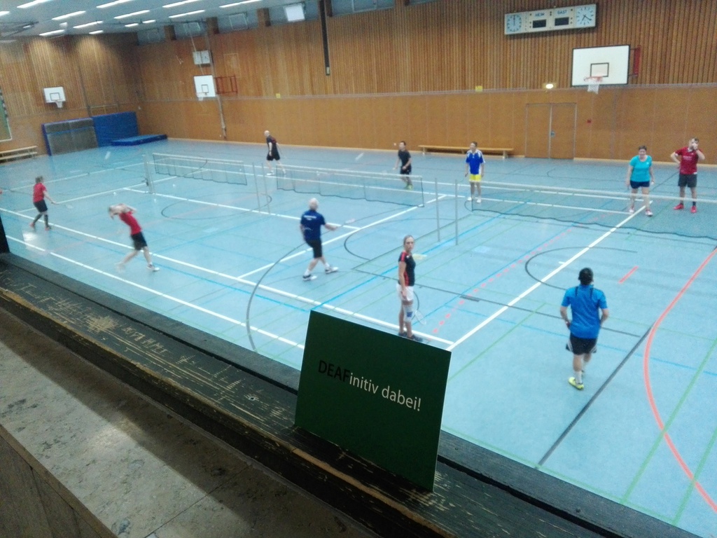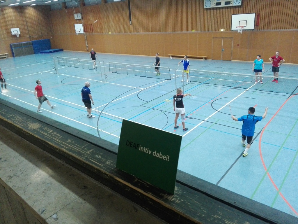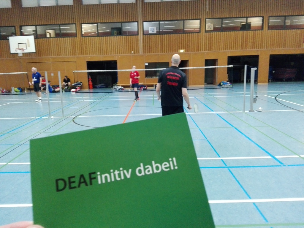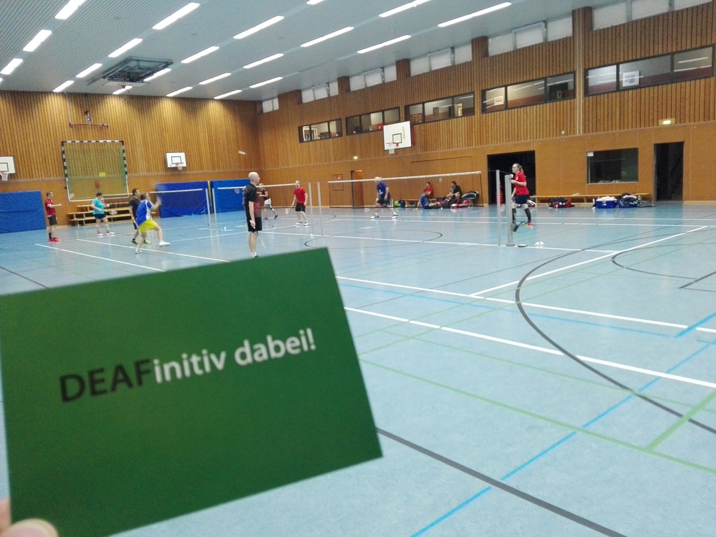 Am 11.09.2019 fand im Rahmen der „DEAFinitiv dabei!“-Aktion des Berufsverbands der Gebärdensprachdolmetscher Deutschlands ein Badminton-Schnupperkurs in Gebärdensprache statt. Das Angebot erfolgte in Zusammenarbeit vom 1. Badminton-Club Düren und lioOon Gebärdensprachdolmetschen Köln. Als Trainer stand Michael Zymelka auf dem Platz, der als Gebärdensprachdolmetscher das Training durchführte.