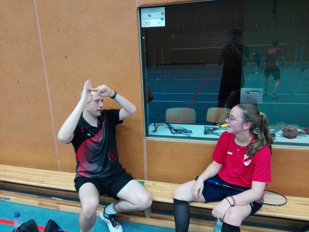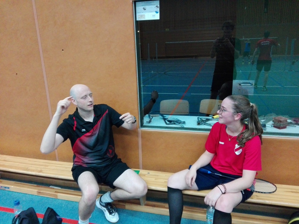 Leider gab es keine Anmeldungen im Gehörlosen-Bereich und dennoch war dieser Abend ein voller Erfolg. Es kamen bis zu 15 Spielerinnen und Spieler, die sich für Gebärdensprache interessiert haben und so einen Einblick in die Welt der Gebärden bekamen. So können die Teilnehmer jetzt die für uns wichtigen Begriffe/Schläge gebärden. Unter den Anwesenden war mit Dr. Michael Oversberg (Deutscher Meister, Westdeutscher Meister, Platz 3 bei der WM 2019…) ein „Urgestein“ des 1. BC Düren.