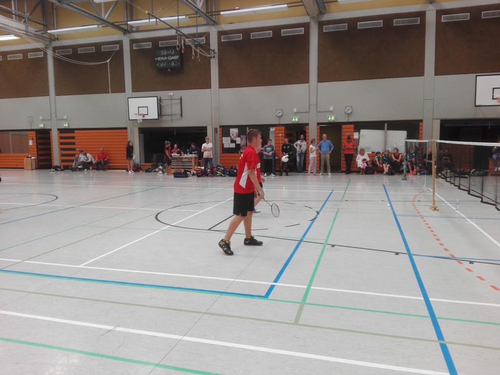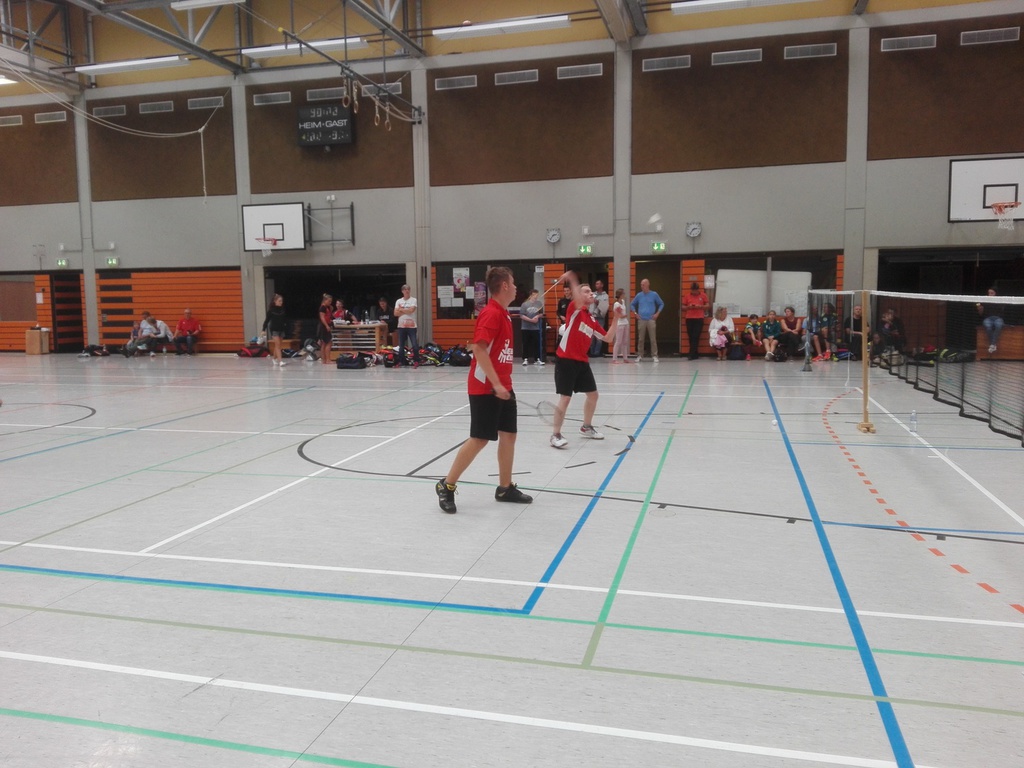 Das zweite Herrendoppel spielten Michael Pütz und Benedikt Weidner gegen Yannik Körfer und Marcel Isenbügel. Im ersten Satz war es durchaus eine ausgeglichene Begegnung. Michael und Benedikt hielten sehr gut dagegen und erkämpften sich Punkt um Punkt. Jedoch waren die Gegner einen kleinen ticken stärker sodass die beiden Dürener diesen Satz sehr knapp mit 18:21 verloren. Im zweiten Satz zeigte sich dann die Klasse der Gastgeber und Michael und Benedikt hatten da leider nicht mehr viel entgegenzusetzen. So ging der Satz deutlich mit 12:21 verloren.
