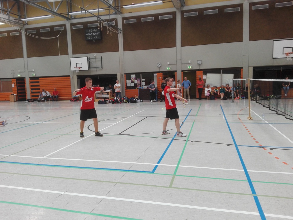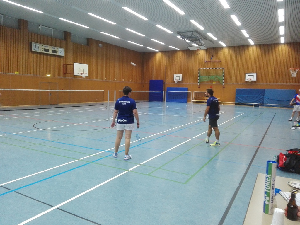 Im ersten Herrendoppel trafen Dominik Lindlar und Michael Zymelka auf Maik Dinslaken und Martin Meindl. Im ersten Satz hatten Dominik und Michael leider nicht viel dagegenzusetzen. Sie fanden zum keinen Zeitpunkt ins Spiel und verloren so recht deutlich mit 21:9. Im zweiten Satz lief es für die beiden deutlich besser, dennoch reichte dies nicht, um einen dritten Satz herauszuspielen. Im zweiten Satz verloren die beiden Dürener mit 15:21.