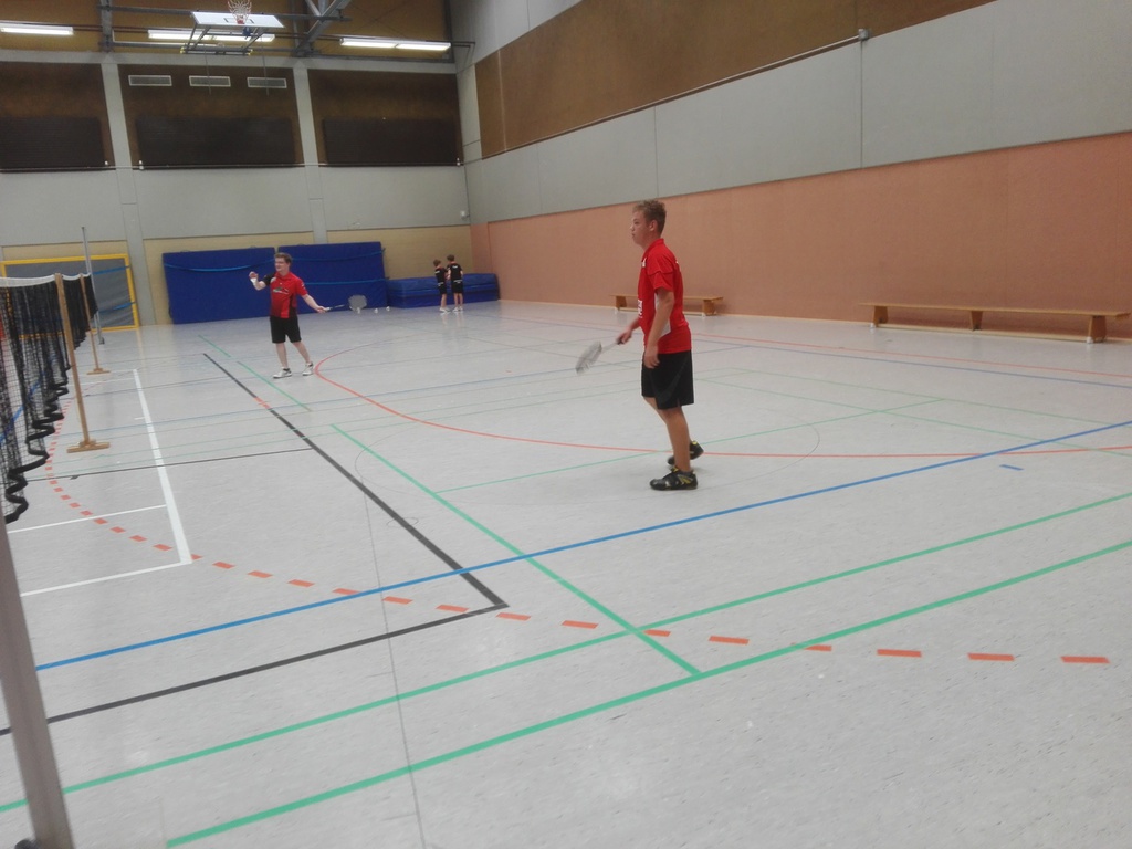 Das erste Einzel bestritt Finn Kuhlmann gegen Philipp Betche. Finn spielte sehr überlegen und ließ seinem Gegner keine Chance und gewann sein Einzel sehr stark mit 21:6 und 21:5. Das zweite Einzel spielte Max Gröbe gegen Tim Franke. Auch Max konnte durch ein sehr starkes Spiel seinen Gegner dominieren und gewann sein Einzel ebenfalls deutlich mit 21:6 und 21:8. Im dritten Einzel traf Mattis Kuhlmann auf Marlin Restle. Zu Beginn des ersten Satzes tat sich Mattis noch etwas schwer, konnte aber dann durch viel Einsatz den Satz mit 21:12 gewinnen. Der zweite Satz viel ihm deutlich leichter und so dominierte er da auch seinen Gegner und gewann mit 21:9.