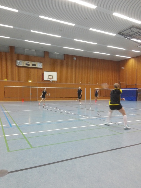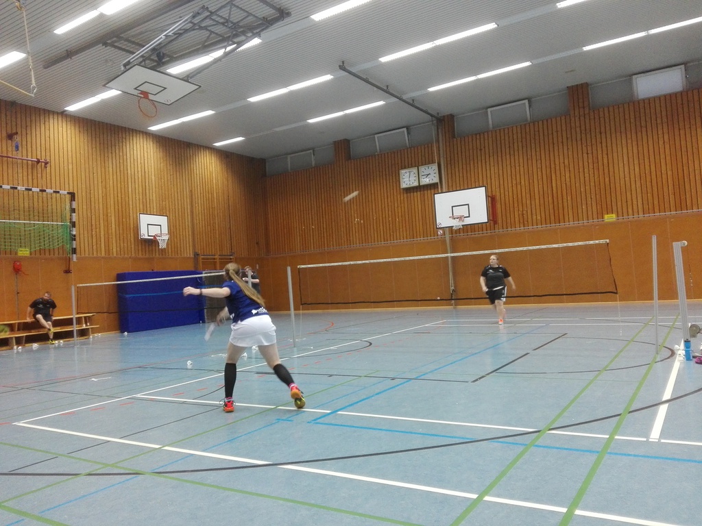Im Damendoppel spielten Lara Decker und Stefanie Ferebauer (aus der zweiten Mannschaft, weil sich Susanne Kuckertz im Spiel gegen Walheim leider verletzt hatte) gegen Pia Köpp und Michelle Böttcher. Phasenweise konnten unsere Damen richtig gut mithalten, doch an vielen Stellen zeigte sich auch, dass die Bezirksliga ein anderes Tempo hat, als die Kreisliga. Lara und Stefanie kämpften um jeden einzelnen Punkt und spielten stellenweise richtig gut mit. Sie verloren zwar beide Sätze (11:21, 13:21) haben aber gegen Starke Damen alles Mögliche gegeben.