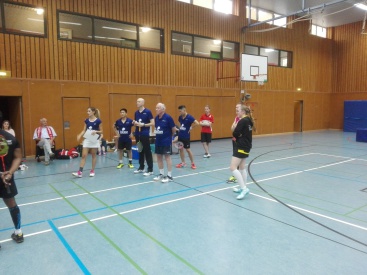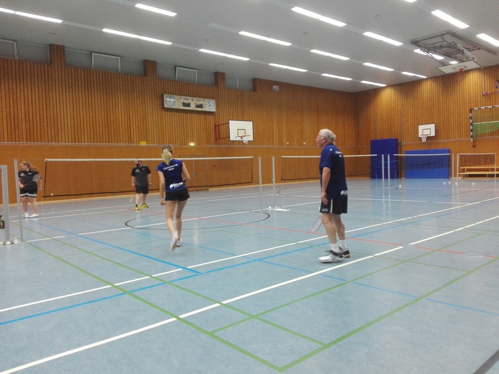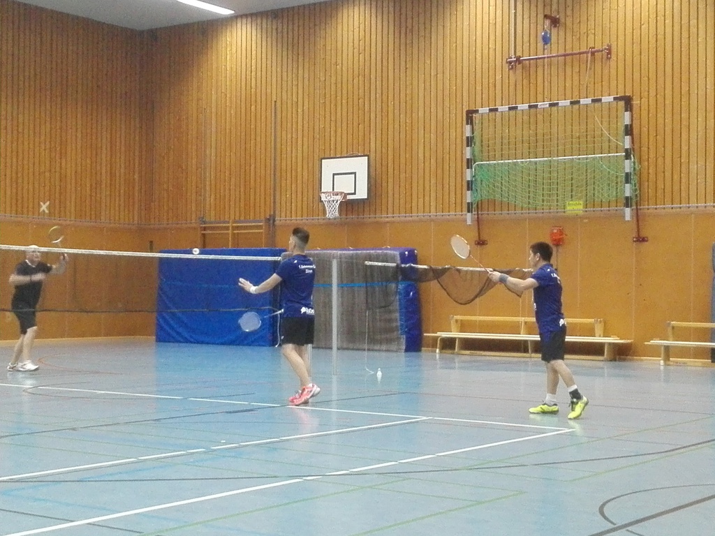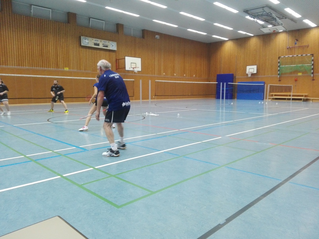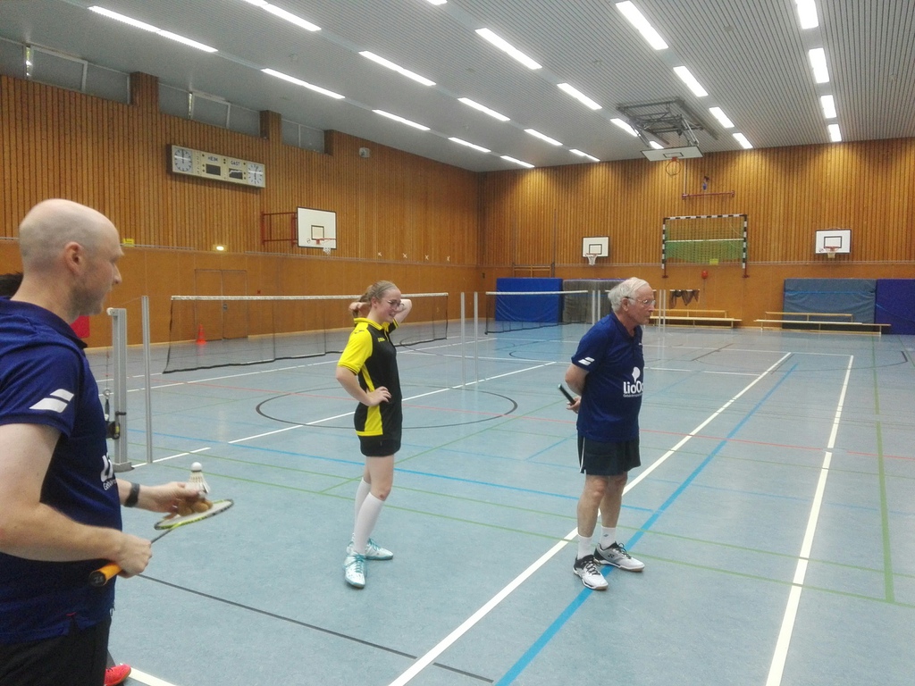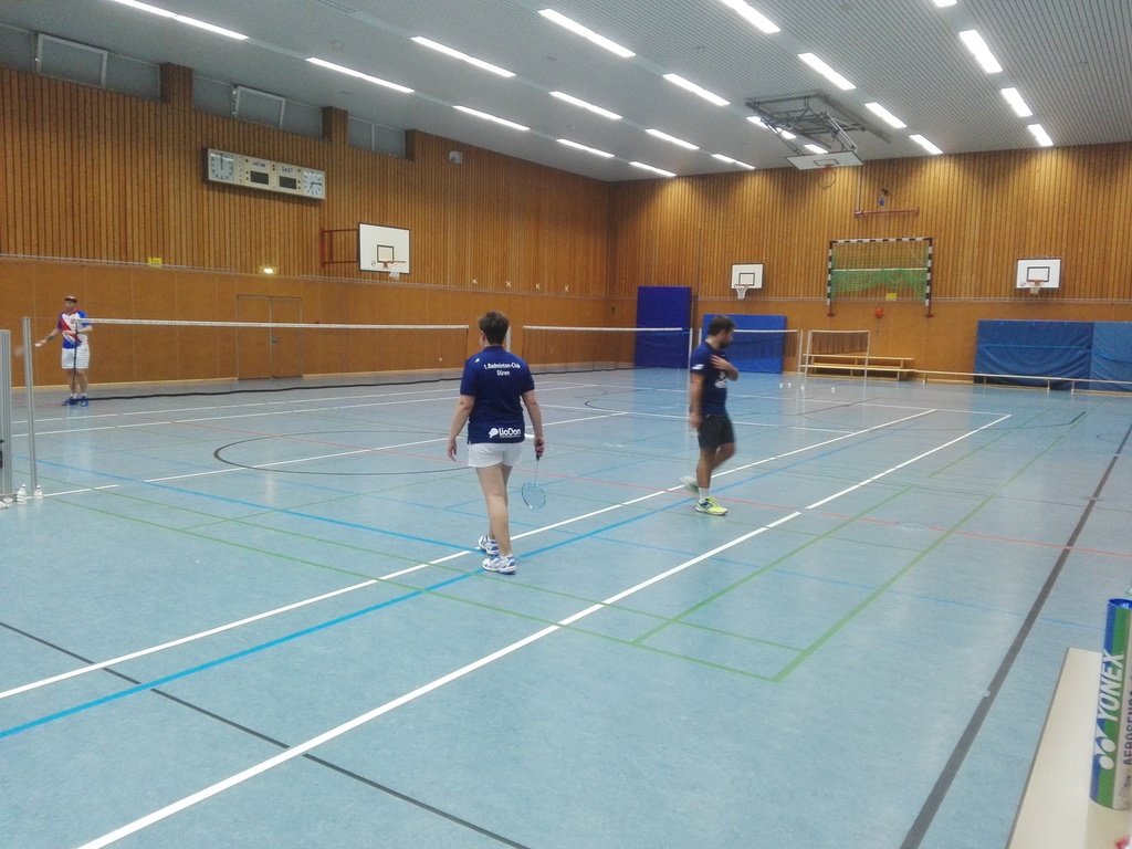 Länger dauerte es im zweiten Herrendoppel (Torsten Heinze u. Dominik Lindlar vs. Uwe Sommer u. Michael Robertz). Hier fand ein Spiel auf Augenhöhe über drei Sätze hinweg statt. In allen Sätzen kämpften beide Paarungen um jeden einzelnen Punkt, gaben keinen einzigen Ball verloren und gestalteten so die Partie bis zum Schluss offen. Torsten und Dominik gelang es im ersten Satz mit 21:18 zu gewinnen. Doch die Gegner zogen ihr Spiel weiter durch und so verloren unsere Herren den zweiten Satz knapp mit 19:21. Noch enger wurde es im dritten Satz, wo Torsten und Dominik mit 22:20 in der Satzverlängerung gewinnen konnten.