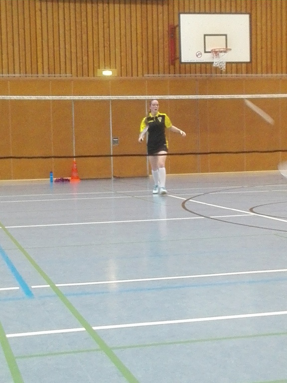 Im Dameneinzel traf Faye Wollenweber auf Sarah Heiden. Faye kam leider nicht so gut in Einzel rein, so dass ihre Gegnerin schon mit einem Vorsprung davonzog, den Faye nicht mehr aufholen konnte, sodass der erste Satz mit 10:21 verloren ging. Im zweiten Satz kam Faye besser ins Spiel, doch auch hier konnte ihre Gegnerin sich leicht absetzen und das Spiel so mit 15:21 für sich entscheiden.
