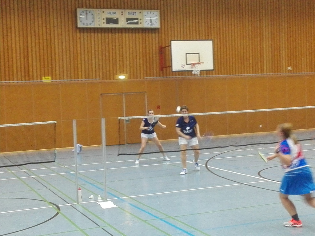 Im Damendoppel trafen Hannah Decker und Susanne Kuckertz auf Aileen Nadenau und Anja Webers. Im ersten Satz wurde es eher ein kurzer Prozess für unsere Damen. Sie versuchten gegen starke Gegnerinnen mitzuhalten, schafften es aber nur teilweise. So ging der erste Satz mit 12:21 verloren. Im zweiten Satz zeigten Hannah und Susanne mehr Gegenwehr, hielten das Spiel lange Zeit offen, verloren am Ende dennoch mit 16:21.