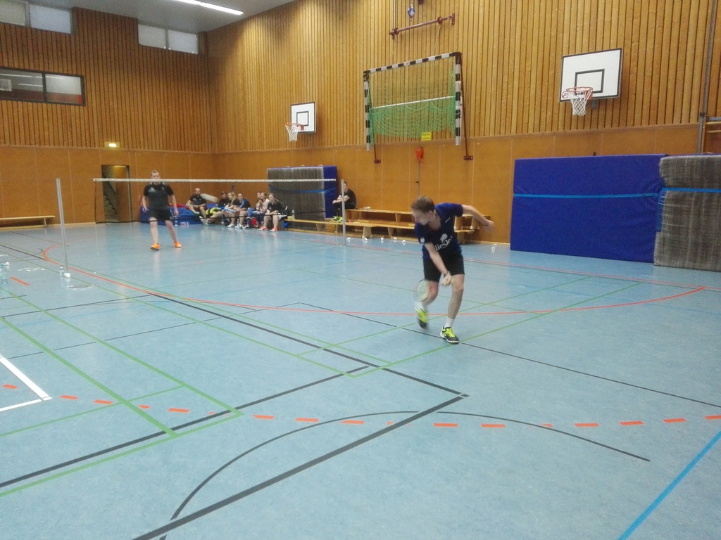 Das erste Herreneinzel spielte Torsten Heinze gegen Jan Beyer und es war ein sehr laufintensives Spiel von beiden Seiten. Im ersten Satz konnte sich Torsten sehr knapp mit einer starken läuferischen Leistung mit 21:18 durchsetzen. Doch sein Gegner nahm die Spielweise halbwegs an und drehte im zweiten Satz richtig auf und gewann mit 21:15. So musste der dritte Satz eine Entscheidung bringen. Auch hier ging es wieder hoch her beide kämpften um jeden einzelnen Ball. Am Ende des Satzes verletzte sich der Gegner leicht, spielte weiter konnte aber den Bällen nicht mehr so hinterherjagen, sodass Torsten sich am Ende des Satzes absetzen konnte und mit 21:16 gewann.