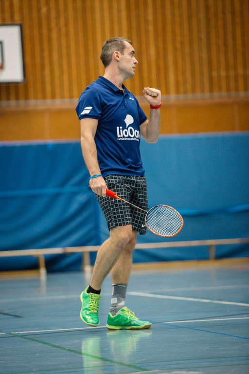 Ebenfalls in drei sehr spannenden Sätzen spielte Dominik Lindlar gegen Ulf Rosner. Im ersten Satz musste sich Dominik noch ins Spiel hineinkämpfen und ließ so viele Punkte für den Gegner zu. Dominik verlor den ersten Satz mit 14:21. Im zweiten Satz war Dominik richtig im Spielgeschehen dominierte teilweise seinen Gegner, machte aber auch einige Fehler, konnte den Satz dennoch mit 21:17 gewinnen. Im dritten Satz wurde es ein Spiel auf Augenhöhe. Beide kämpften um jeden einzelnen Punkt und am Ende konnte sich Dominik denkbar knapp mit 21:19 durchsetzen.