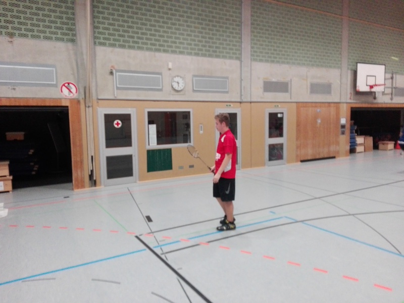 Im ersten Herreneinzel traf Dominik Lindlar auf Raul Rahulan Tharmakulasingam. Im ersten Satz war das eine sehr gute Performance von Dominik, weil er den Gegner überhaupt nicht zum Zuge kommen ließ und mit 21:4 gewann. Im zweiten Satz hatte Dominik kleinere Probleme konnte aber den Satz mit 21:16 für sich entscheiden.