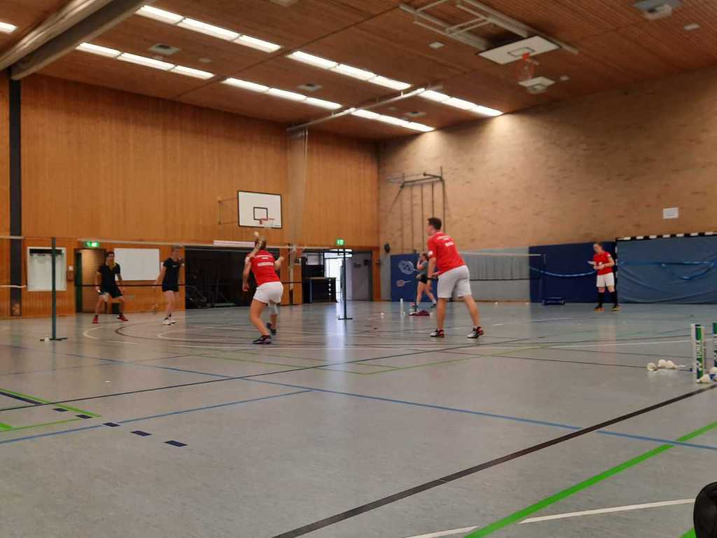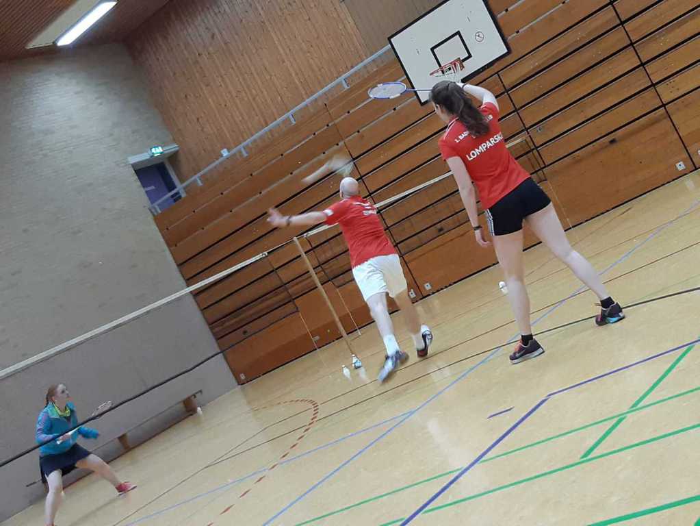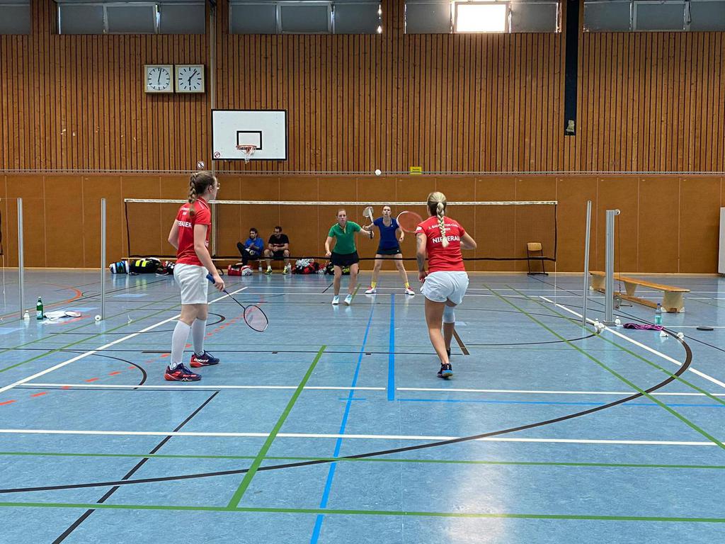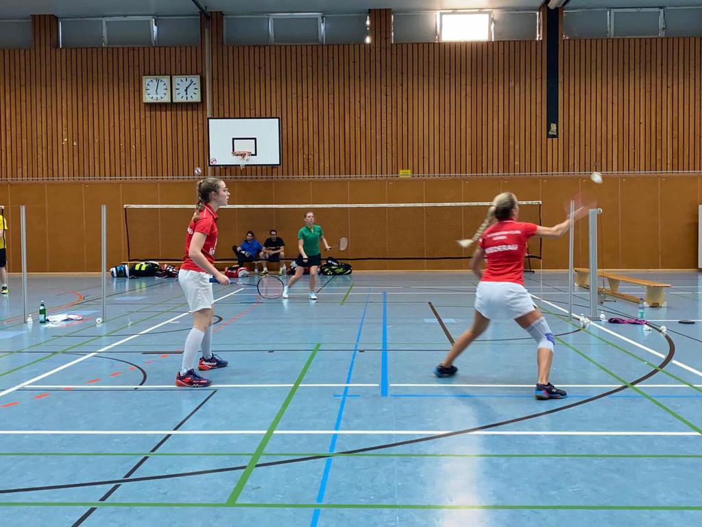 Beide Mannschaften starteten nur mit drei Herren somit fällt das zweite Herrendoppel aus der Wertung. Im ersten Herrendoppel hatten Bastian Neuß und Jan Hamboch gegen Oskar Mete und Moritz Siekmann nicht viel entgegenzusetzen. Sie kämpften in beiden Sätzen um jeden Punkt, verloren allerding mit 9:21 und 7:21. Parallel lief das Damendoppel, wo Sonja Willkowski und Danae Mouzouraki zum ersten Mal zusammen spielten und das gegen zwei sehr starke Gegnerinnen (Isabel Schweizer u. Lena Schmelzer). Sonja und Danae gaben alles und erkämpften sich einmal 6 und einmal 7 Punkte.