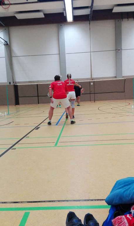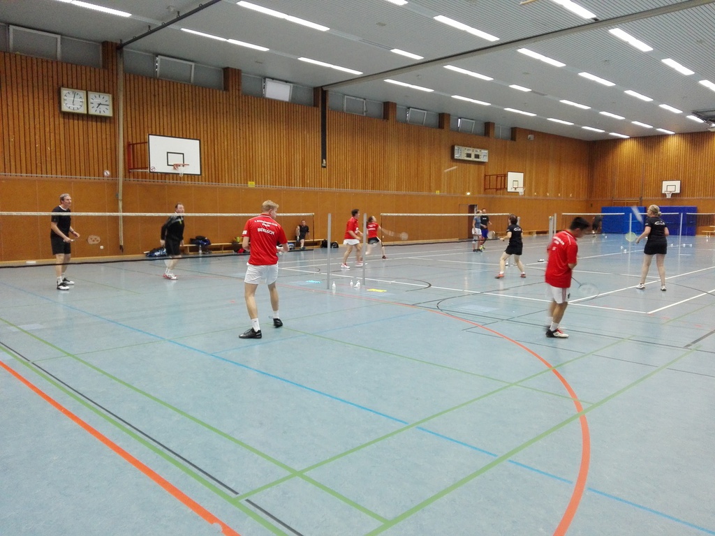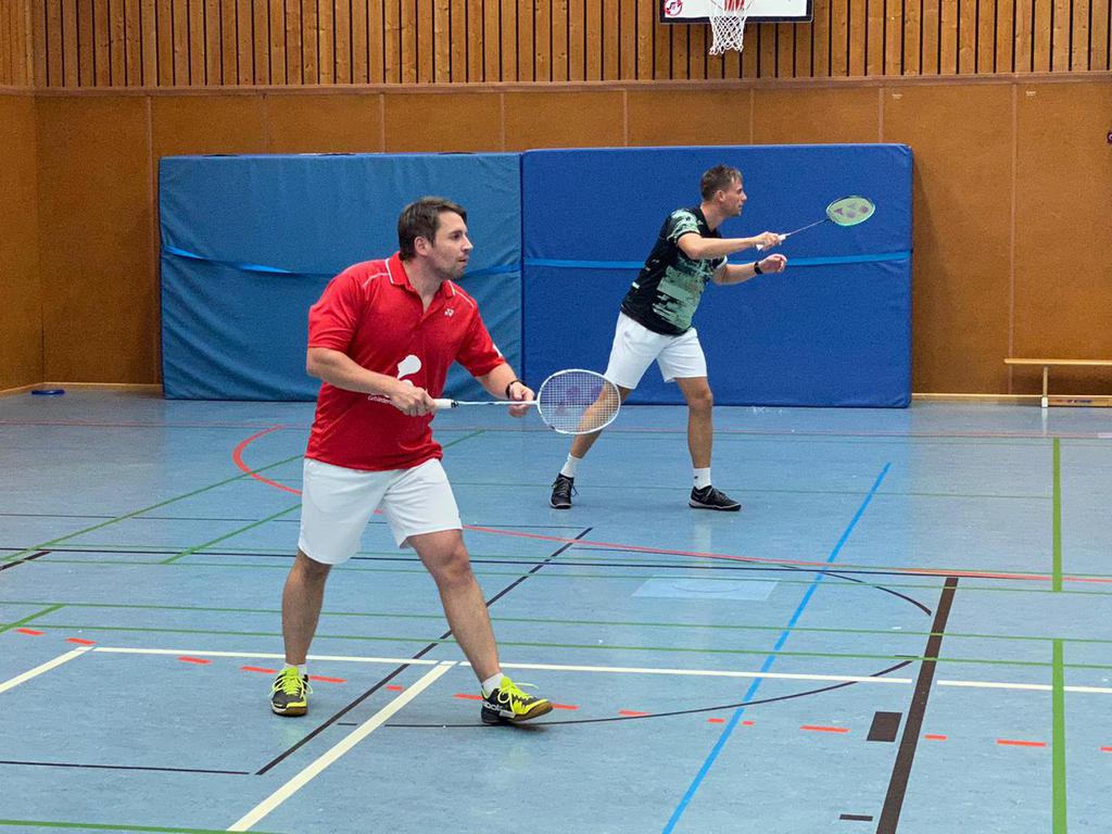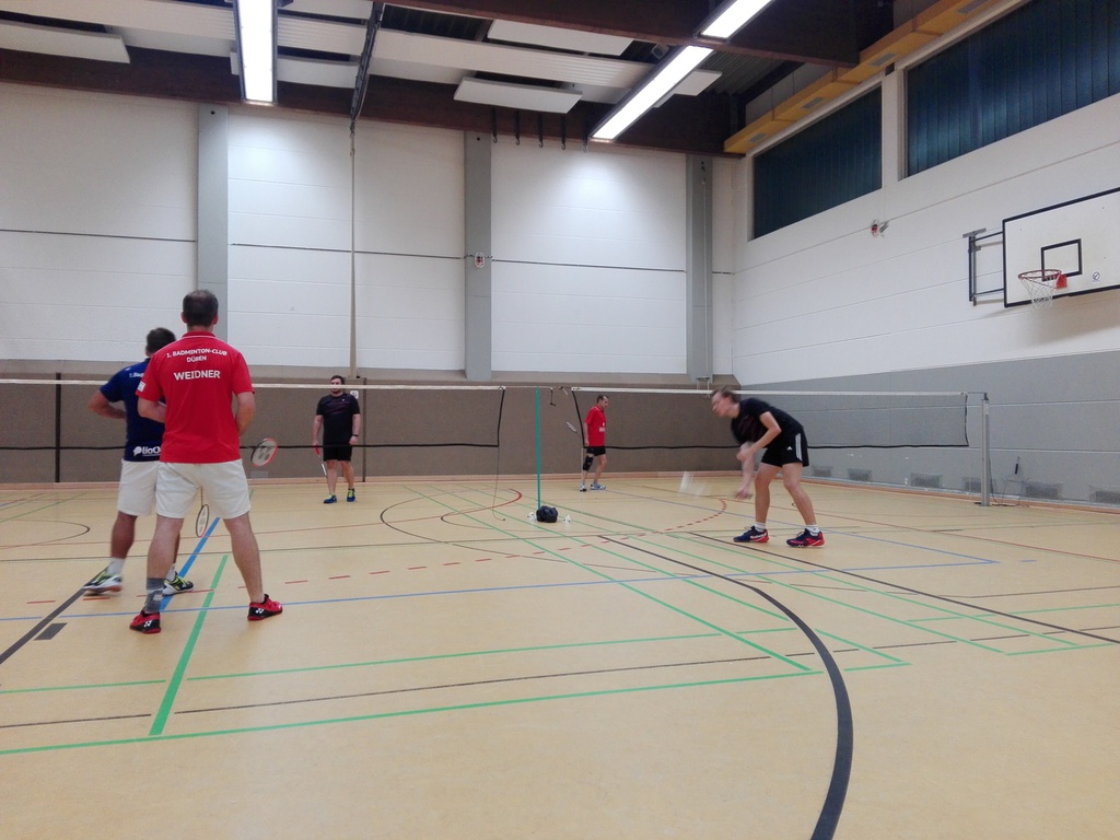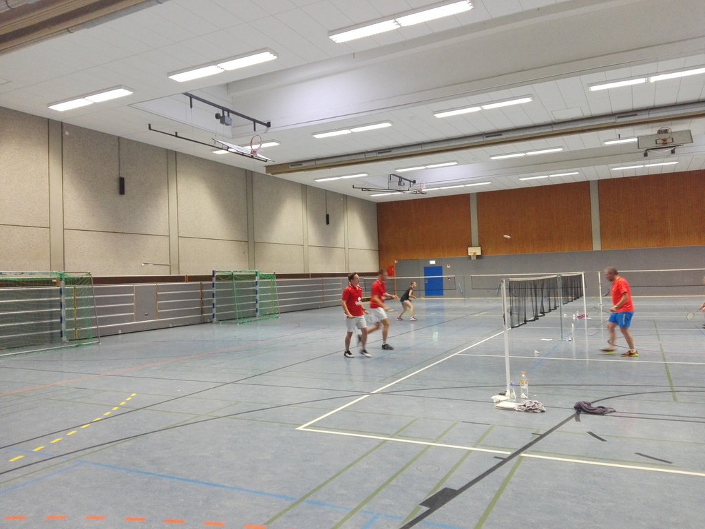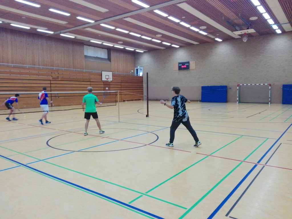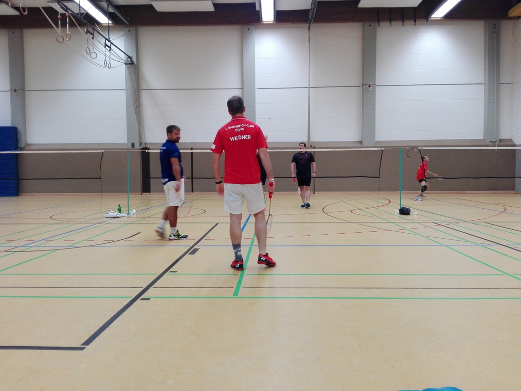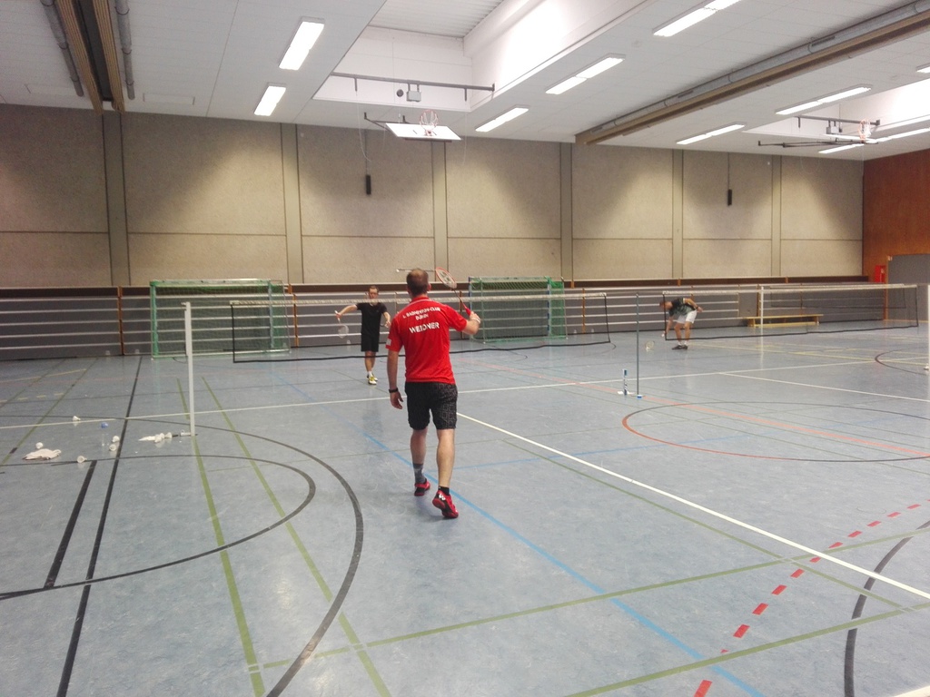 Bereits in den beiden Herrendoppeln ging es hoch her. Im ersten Herrendoppel (Dominik Lindlar u. Florian Esser vs. Christian Niehoff u. Thomas Dikomey) zeigten Florian und Dominik ein starkes Doppel. Im ersten Satz taten sie sich noch etwas schwer, konnten diesen allerdings mit 21:16 gewinnen. Im zweiten Satz gab es keine Spielchen mehr von beiden, sodass sie den Satz souverän mit 21:12 gewonnen haben. Im zweiten Herrendoppel (Ly Xuan Duong u. Frank Pelzer vs. Refik Kabakci u. Ünal Akkurt) wurde es sehr spannend. Ein dritter Satz musste her um eine Entscheidung herbeizuführen. Im ersten Satz hatten es Duong und Frank etwas schwer, weil sie nicht so eingespielt haben. Mit einigen Abstimmungsschwierigkeiten verloren sie knapp mit 16:21. Im zweiten Satz drehten beide richtig auf. Sie zeigten ihr bestes Doppel und gewann so mit 21:14. Der dritte Satz war ein Spiel auf Augenhöhe. Beide Paarungen wollten diesen Satz unbedingt gewinnen. Am Ende setzten sich unsere Herren durch und gewann denkbar knapp mit 24:22.