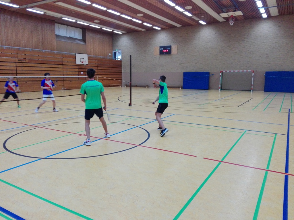 Um 13 Uhr ging es los mit dem Spiel der Jugendlichen in Köln los. Auf zwei Feldern wurde gespielt und begonnen wurde mit dem ersten Herrendoppel (Bastian Neuss u. Emil Vermeegen vs. Max Dröden u. Ruixi Jiang) und dem zweitem Herrendoppel (Leon von Wirth u. Jan Hamboch vs. Florian Dietrich u. Ole Krawutschke). Beide Doppel hatten ihre Spannungsmomente und es ging bei beiden ziemlich knapp zu. Bastian und Emil haben gut zusammen gespielt, mussten sich allerdings mit 18:21 und 17:21 geschlagen geben. Im zweiten Herrendoppel ging es für Leon noch spannender zu, doch mussten sie sich auch mit 19:21 und 18:21 geschlagen geben.