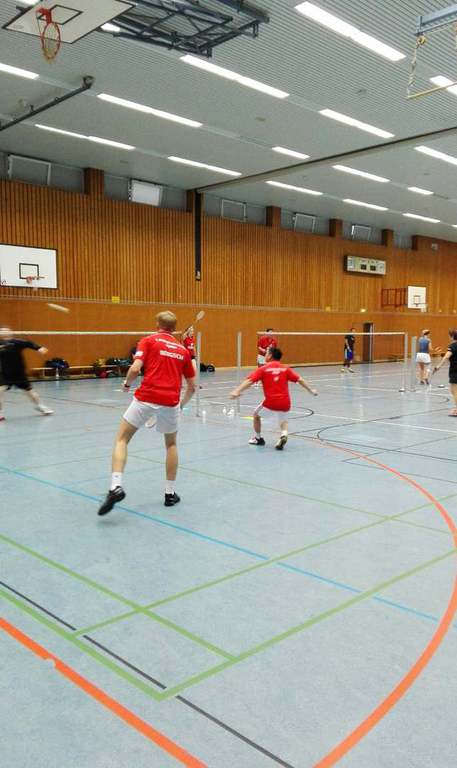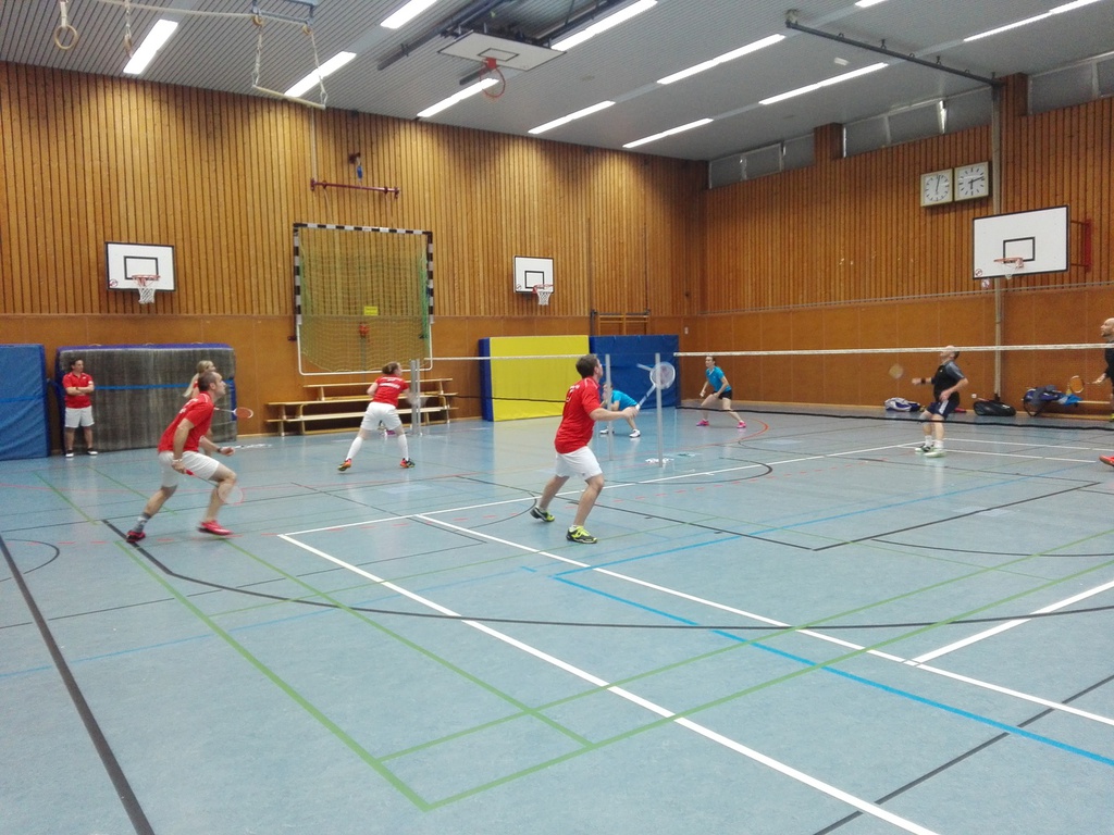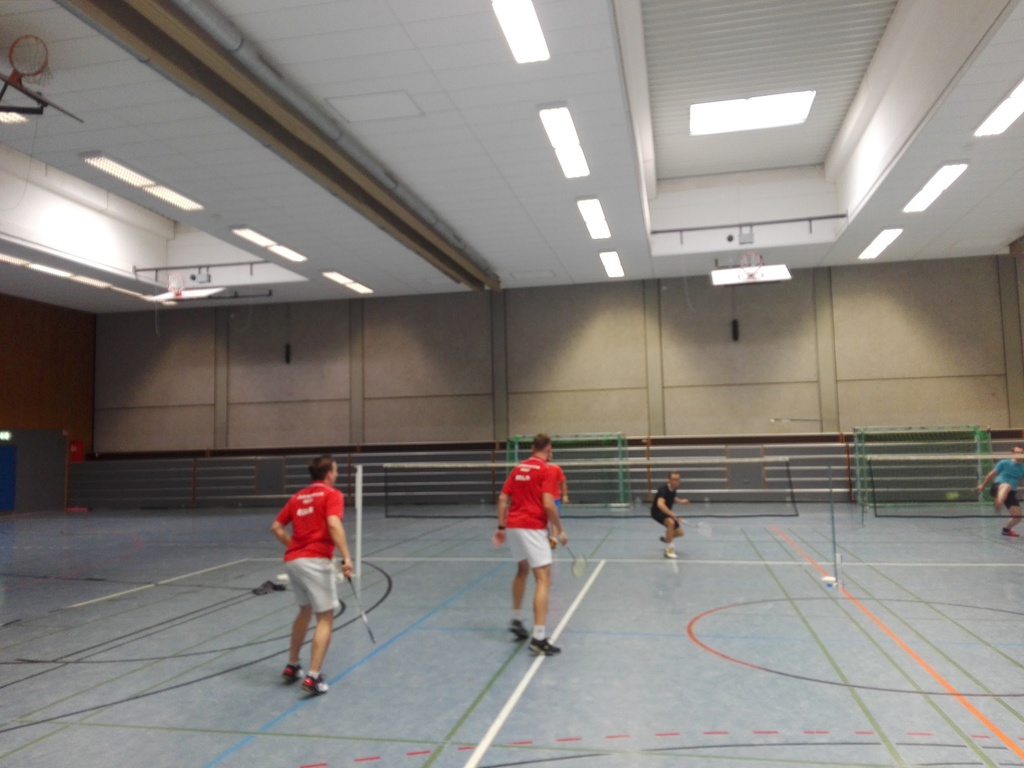 So ging es bereits sehr gut für uns Los. Mit einem 3:0 Vorsprung ging es ins erste Herrendoppel (Michael Pütz u. Benedikt Weidner vs. Matthias Böing u. Thomas Faber) und dem dritten Herreneinzel (Torsten Heinze vs. Alexander Heinrichs) weiter. Im ersten Herrendoppel sah es anfangs durchaus so aus, als ob unsere Herren es ziemlich schwer haben würden etwas Zählbares mitzunehmen. Die Gegner erspielten sich anfangs sehr stark viele Punkte und Michael und Benedikt schauten zu. Dann drehten sie richtig auf, nahmen den besten Spieler der gegnerischen Paarung nahezu komplett aus dem Doppel und konnten am Ende sehr knapp mit 21:19 gewinnen. Im zweiten Satz spielten sie genauso weiter und gewannen souverän mit 21:14. Torsten hatte in seinem Einzel gegen seinen Gegner anfangs ein paar Probleme konnte, aber dennoch durch eine sehr gute Spielweise mit 21:16 gewinnen. Mit hohen Zielen ging er in den zweiten Satz (er wollte diesen Satz unbedingt mit unter zehn Punkten gewinnen). Leider wurde dieses hohe Ziel knapp verfehlt, doch am Ende gewann er sehr stark mit 21:11. So war der Sieg schon in trockenen Tüchern und nahezu gleichzeitig kam die Nachricht, dass die zweite Mannschaft 5:3 in Kreuzau gewonnen hatte.