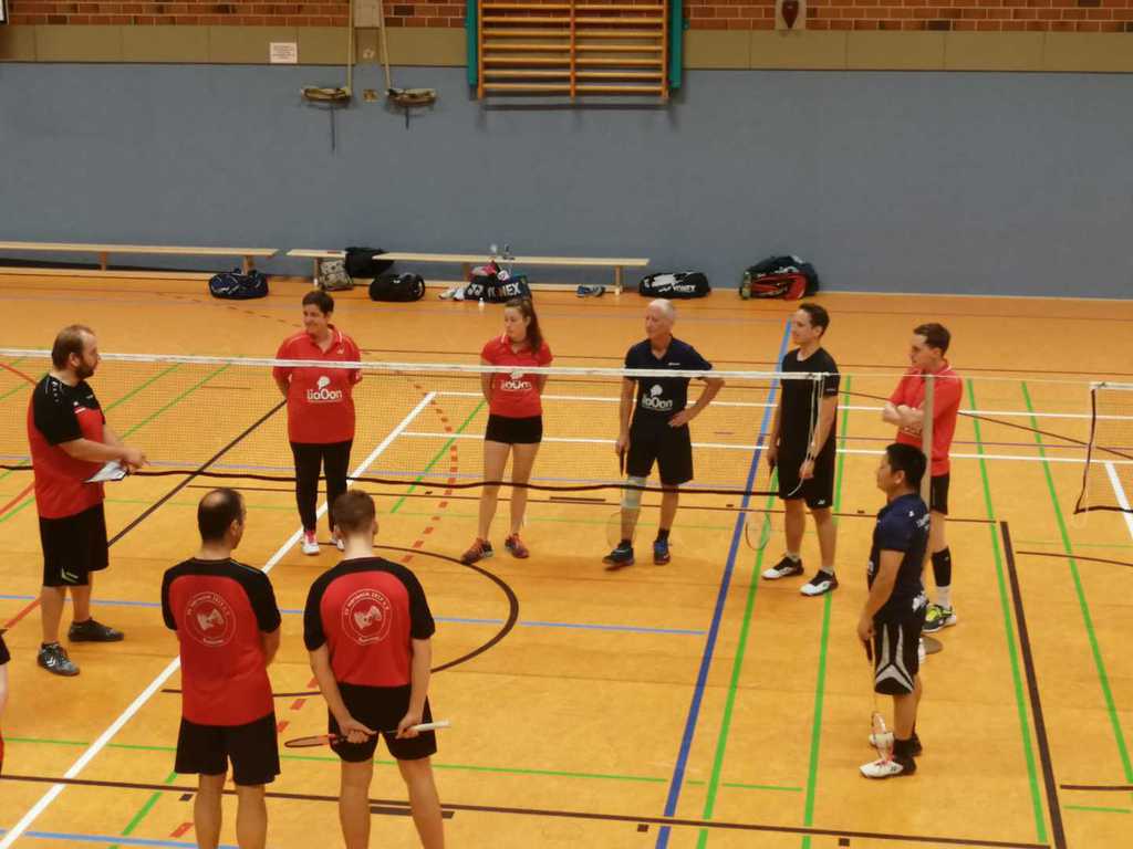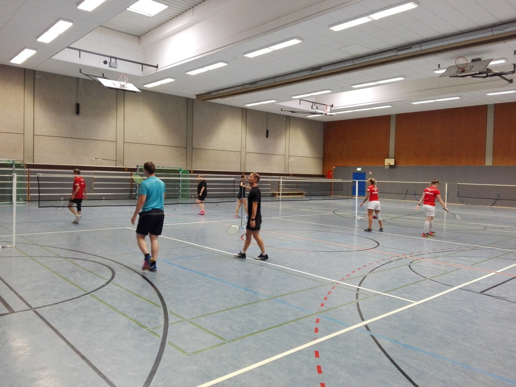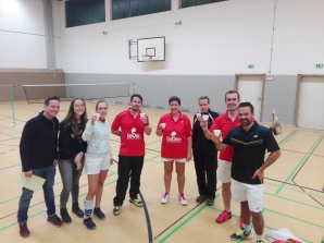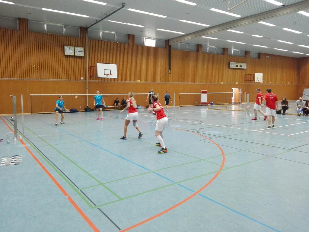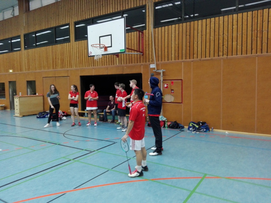 Weiterhin spannend ging es im ersten Herreneinzel (Dominik Lindlar vs. Ben Celmer), im zweiten Herreneinzel (Ly Xuan Duong vs. Bernd Schuch) und im Dameneinzel (Susanne Kuckertz vs. Larissa Riege) zu. Alle drei Disziplinen konnten erst im dritten Satz entschieden werden. Dominik hatte in seinem Einzel im ersten Satz die Oberhand und gewann diesen mit 21:16. Doch im zweiten Satz blieb es ein Einzel auf Augenhöhe und sein Gegner gewann mit 21:16. Im dritten Satz schaffte es Dominik sich am Ende abzusetzen und sich in einem spannenden Einzel mit 21:16 durchzusetzen. Doung traf auf seinen schweren Gegner, konnte im ersten Satz das Tempo nicht ganz mitgehen und verlor mit 14:21. Im zweiten Satz drehte er auf und es kam zu einem Match auf Augenhöhe. Diesen Satz konnte er knapp mit 21:19 gewinnen. Doch der zweite Satz hatte viele Kräfte gekostet, die im dritten fehlten und so verlor Doung den dritten Satz erneut mit 14:21. Im Dameneinzel lieferten sich beide Damen einen ersten Satz auf Augenhöhe. Beide kämpften um jeden einzelnen Punkt und Susanne konnte am Ende mit 21:18 den Satz gewinnen. Jedoch fehlten in den darauffolgenden Sätzen etwas die Kräfte, so gingen Satz zwei und drei jeweils mit 13:21 verloren.
