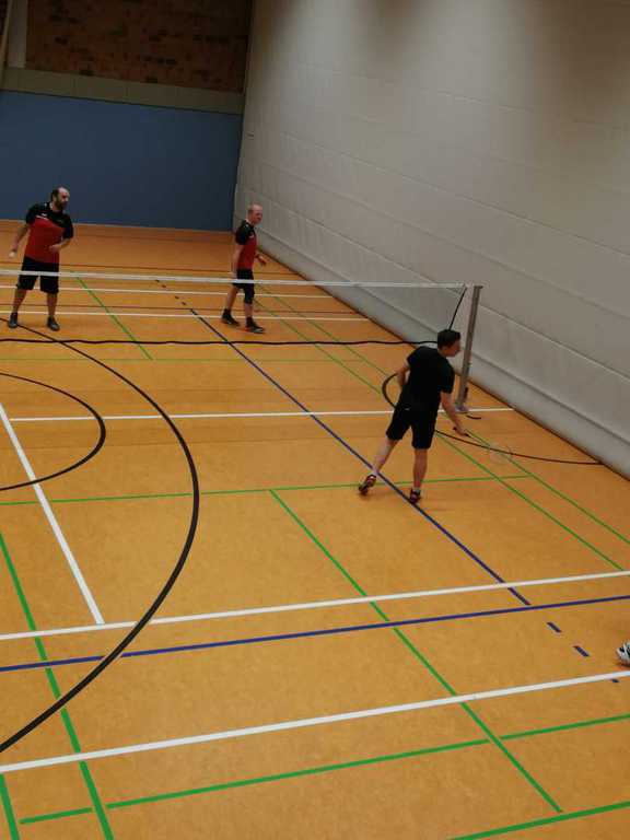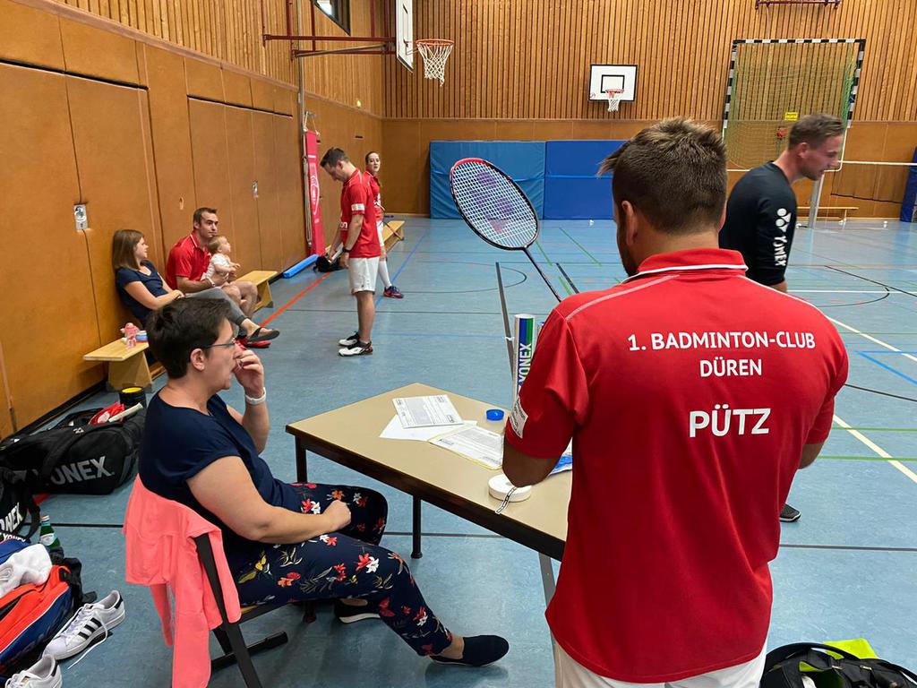 Zum Abschluss gab es noch ein spannendes Herreneinzel zwischen Michael Pütz und Hendrik Hänel. Im ersten Satz kam Michael nicht richtig ins Spiel. Sein Gegner holte starke Punkte und gewann am Ende mit 21:14. Im zweiten Satz drehte Michael richtig auf, ließ seinen Gegner laufen und es entwickelte sich ein Spiel, was teilweise auf Augenhöhe geführt wurde. Michael konnte diesen Satz am Ende mit 21:19 gewinnen. So ging es in einen dritten Satz. Der Aachener konnte schon nicht mehr und Michael drehte nochmal richtig auf. Der Satz blieb spannend, weil der Aachener nicht aufgab. Doch am Ende gewann Michael mit 21:15 ein sehr spannendes erstes Herreneinzel.