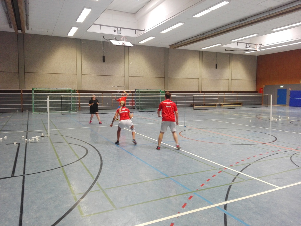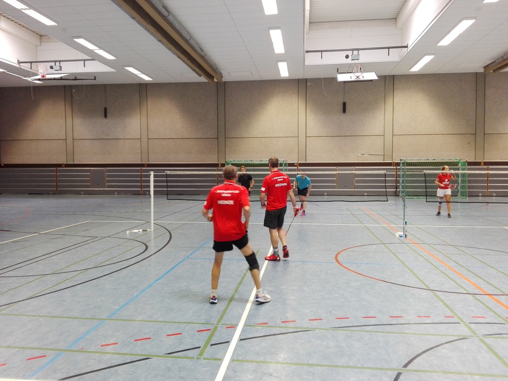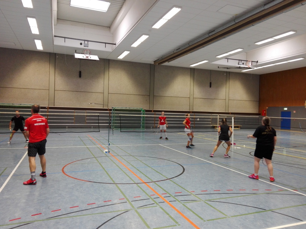 Gestartet wurde mit dem zweiten Herrendoppel (Benedikt Weidner u. Torsten Heinze vs. Manfred Schykowski u. Rene Knap) und dem Damendoppel (Stefanie Ferebauer u. Nadine Niederau vs. Magdalena Kott u. Sandra Beckers). Im Herrendoppel zeigten Torsten und Benedikt von Beginn an eine starke Leistung. Kleinere Fehler sorgten für die Punkte der Gegner, doch war ein Erfolg des Doppels in beiden Sätzen nicht in Gefahr, so wurden beide Sätze mit 21:16 und 21:15 souverän von unseren Herrengewonnen. Im Damendoppel hatten Steffi und Nadine im ersten Satz alles im Griff. Durch ein starkes Spiel konnte dieser ohne große Gefahr mit 21:12 gewonnen werden. Im zweiten Satz kamen viele ungewöhnliche Fehler von unseren beiden Spielerinnen. Sie lagen theoretisch uneinholbar hinten, konnten aber durch eine starke Willensleistung das Ruder irgendwie noch rumreißen und gewannen am Ende denkbar knapp mit 21:19.