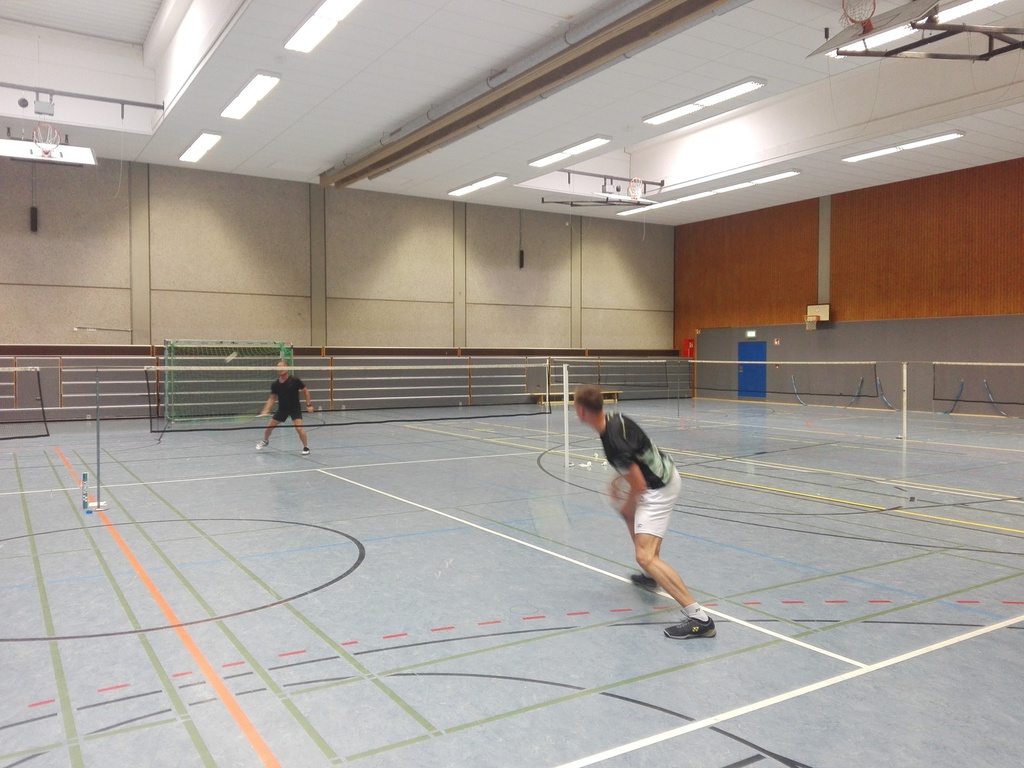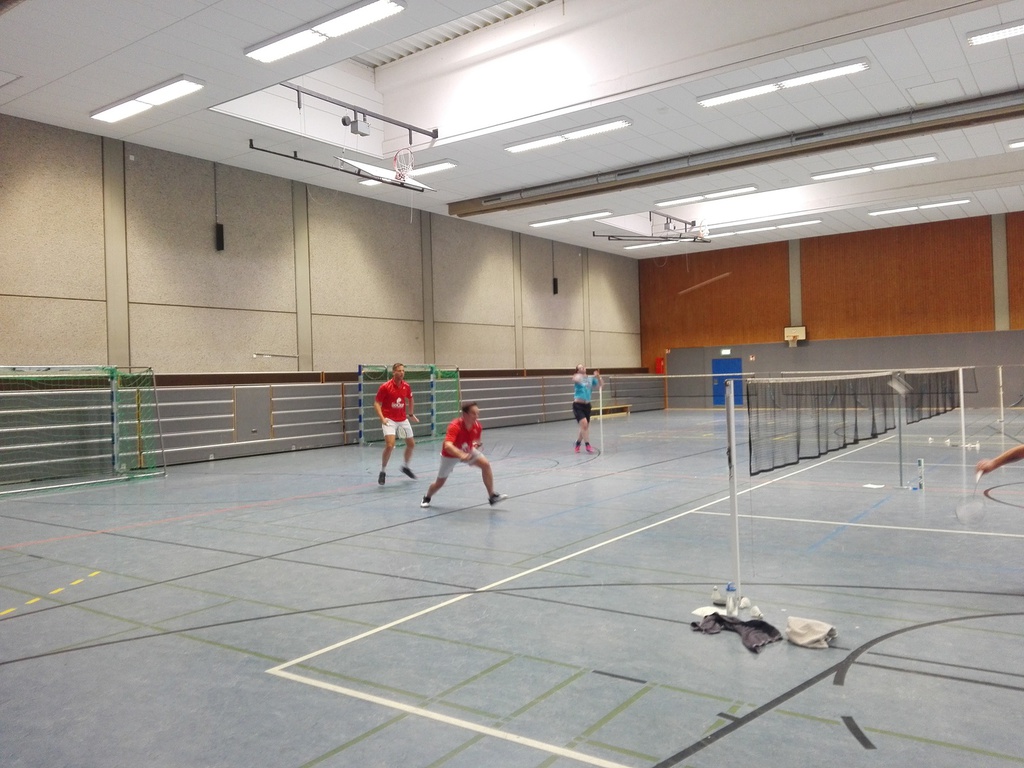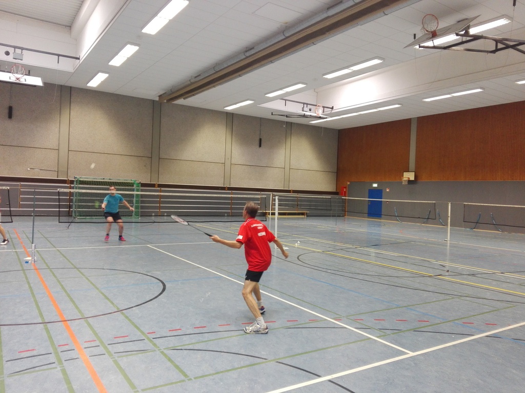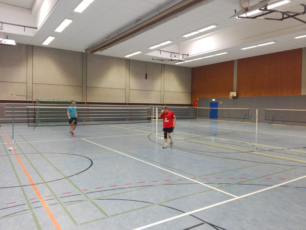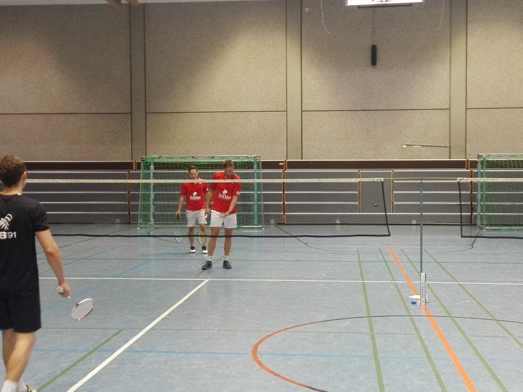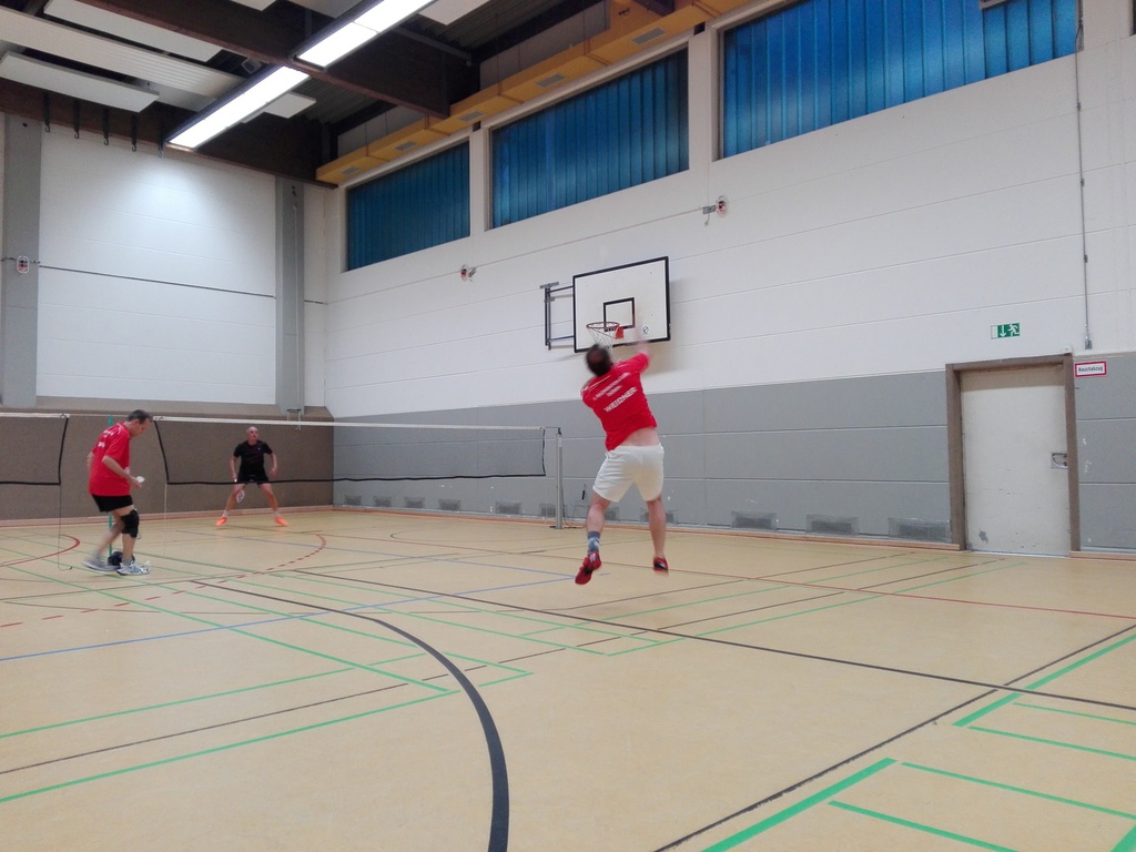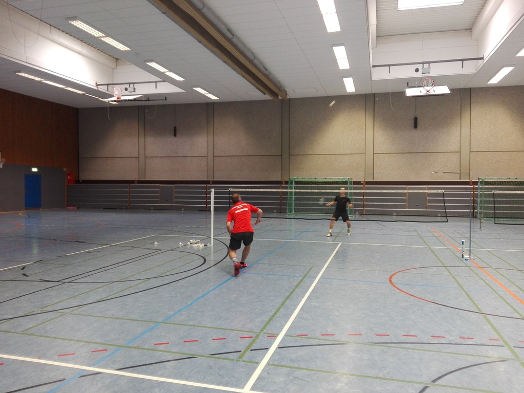Mit einer 2:0 Führung ging es weiter mit einem Spannungsgeladenem ersten Herrendoppel (Florian Esser u. Christoph Braun vs. Frederik Bergs u. Sebastian Fischer) und einem spannenden dritten Herreneinzel (Torsten Heinze vs. Rene Knap). Das erste Herrendoppel hatte wirklich alles zu bieten: Spannung, einen Schlägerbruch, Kampf und einen Schlägerwurf am Ende. Im ersten Satz kamen Florian und Christoph nicht ganz so gut rein, machten kleinere Fehler, die die Gegner dankend annahmen. So ging dieser Satz mit 15:21 verloren. Im zweiten Satz drehten die beiden richtig auf. Stellten ihre Fehler ab und konnten Druckvoll den Satz mit 21:13 gewinnen. So ging es in einen spannenden dritten Satz der es wirklich in sich hatte. In einem Satz der teilweise auf Augenhöhe geführt wurde konnten sich am Ende unsere Herren mit 21:18 knapp durchsetzen. Im Herreneinzel trafen zwei Läufer aufeinander. Von Anfang an war klar, dass dieses Einzel aus viel Laufarbeit bestehen würde. Im ersten Satz ließ Torsten seinen Gegner viel laufen, provozierte dadurch einige Fehler und gewann so mit 21:13. Im zweiten Satz gestaltete sich ein Einzel auf Augenhöhe. Torsten musste nun sehr viel laufen (sein Gegner aber auch). Torsten schlug am Ende noch einmal richtig zu, als er schon glaubte den Satz verloren zu haben und gewann am Ende noch sehr knapp in der Satzverlängerung mit 24:22.
