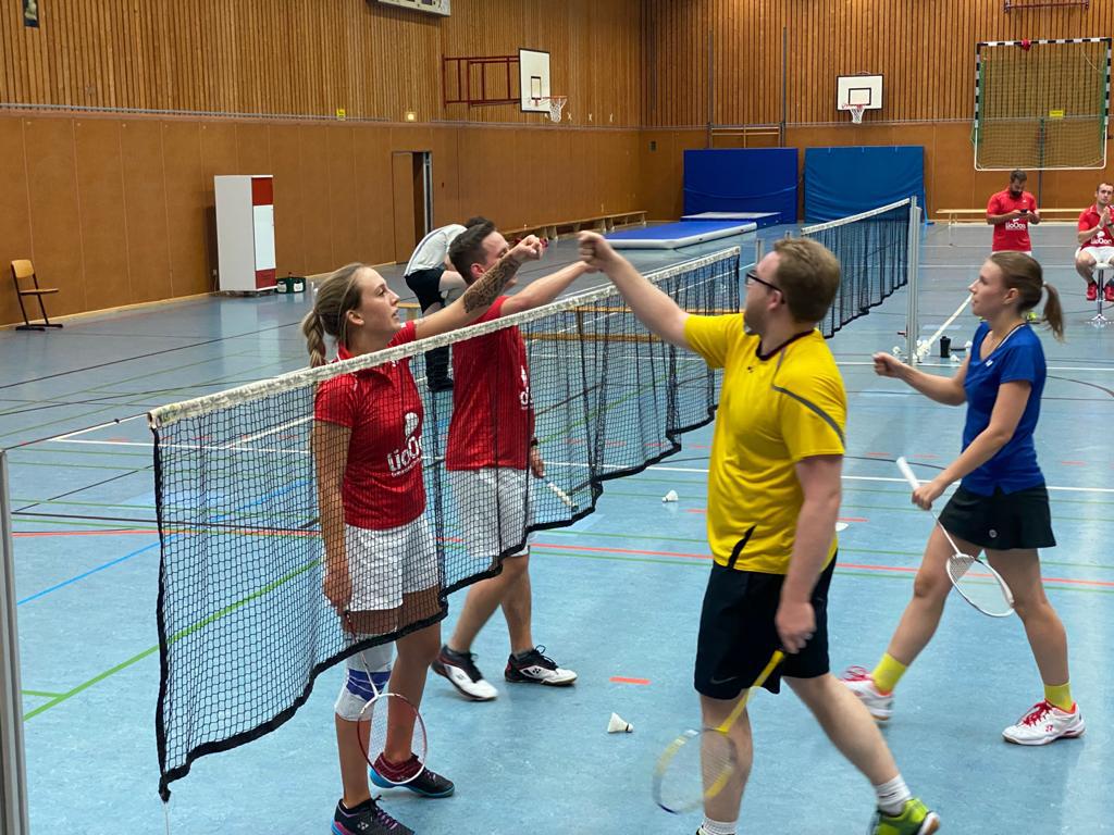 Zum Abschluss gab es noch das Mixed (Jan Hamboch u. Danae Mouzouraki vs. Florian Dietrich u. Carolin Lochner). Jan und Danae hatten es im Mixed nochmal richtig schwer. Sie gaben wirklich alles, hatten aber am Ende gegen sehr starke Gegner keine Chance. Das Mixed wurde mit 8:21 und 1:21 verloren.