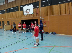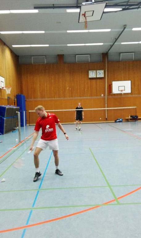 Mit einem 3:3 ging es ins erste Herreneinzel (Christoph Braun vs. Robert janßen) und ins dritte Herreneinzel (Markus Klar vs. Michael Brosch). Markus spielte bereits, während das Mixed lief. Er hatte seinen Gegner von Beginn an in Griff und ließ ihn nicht richtig ins Spiel kommen. Den ersten Satz konnte Markus souverän mit 21:14 gewinnen. An seiner Spielweise änderte er auch im zweiten Satz nichts. Weiter dominierte er das Spiel, sein Gegner wurde zwar etwas stärker doch reichte es für ihn nicht ganz. Markus gewann den zweiten Satz mit 21:16 und sicherte somit schon mal ein Unentschieden. Christoph traf in seinem Einzel auf einen schweren Gegner. Früh war klar, dass es für Christoph nicht einfach werden würde. Im ersten Satz kam er nicht richtig ins Spiel und verlor mit 13:21. Im zweiten Satz gelangen Christoph einige gute Aktionen, doch das reichte leider nicht um gegen einen sehr starken Gegner zu gewinnen. Der Satz ging mit 17:21 verloren.