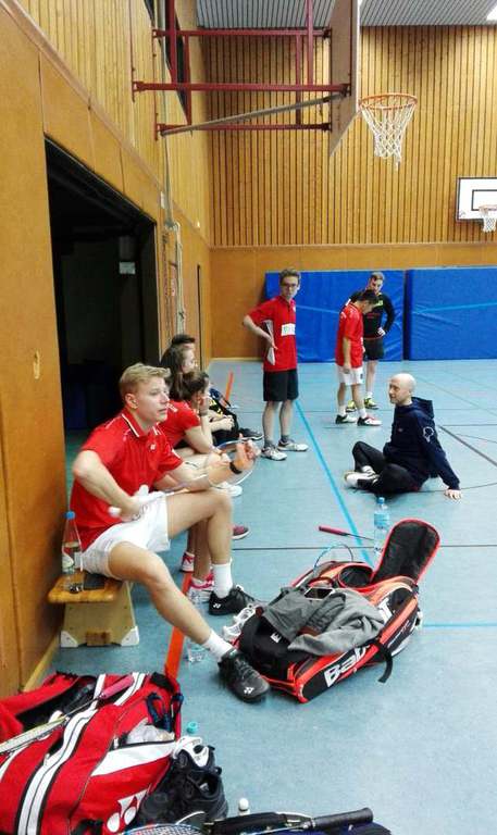 Das Highlight des Nachmittags war das Einzel von Alex Freiburg gegen Moritz Siekmann. Es war etwas fürs Auge. Beide kämpften um jeden einzelnen Punkt. Im ersten Satz war Alex noch nicht so drin und verlor mit 14:21. Nach intensivem Coaching konnte er gestärkt in den zweiten Satz gehen und es kam zu einem offenen Schlagabtausch. Am Ende gelang es Alex leider nicht den dritten Satz zu erzwingen. Er verlor denkbar knapp mit 22:24.