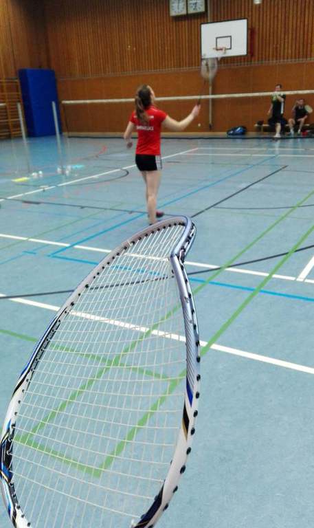 Weiter ging es mit dem zweiten Herrendoppel (Christian Scheidt u. Jan Hamboch vs. Reinhold Yoo u. Silas Flüchter) und dem Dameneinzel (Sophia Pazzini vs. Lea Neuerburg). Für Sophia war es ihr erstes Mannschaftsspiel überhaupt und mit ihrer Leistung im Mixed konnte sie schon sehr zufrieden sein. Im Einzel hatte sie es gegen eine sehr starke Gegnerin schwer. Im ersten Satz verlor sie mit 7:21. Im zweiten Satz gelang es ihr, ihr Spiel nochmal zu verbessern, sie wollte unbedingt zehn Punkte erreichen, verlor aber knapp mit 9:21. Das zweite Herrendoppel wurde sehr spannend. Erst im dritten Satz fiel eine Entscheidung zugunsten der Spielgemeinschaft. Im ersten Satz taten sich Jan und Christian noch sehr schwer und verloren mit 16:21. Im zweiten Satz drehten beide allerdings richtig auf. Vor allem Christian kannte nun keine Freunde mehr, lief viel (manchmal auch seinen Partner um) und holte viele Punkte und der Satz wurde mit 21:14 gewonnen. Im dritten Satz schafften sie es mehr Ruhe reinzubringen und gewann deutlich mit 21:10.