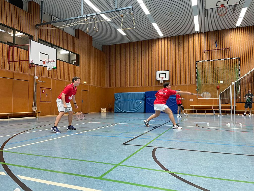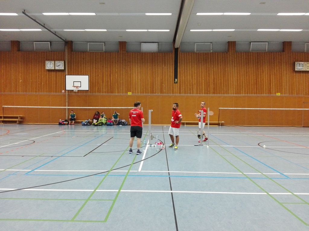 Bereits in den beiden Herrendoppeln wurde klar, dass das keine einfache Aufgabe werden würde. Im 1. HD mussten Florian und Torsten in einen dritten Satz. Nach gewonnen ersten Satz gingen die anderen beiden Sätze verloren (21:13, 17:21, 14:21). Im 2. HD wurde das Spiel klar in zwei Sätzen für die Gäste entschieden. Irgendwie kamen Michael und Benedikt nicht richtig zum Zuge (16:21, 13:21).