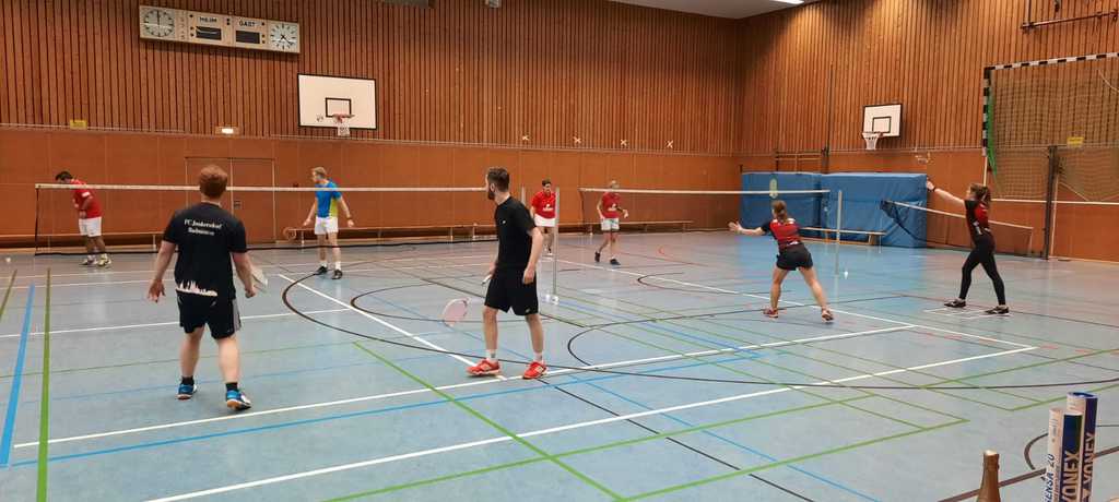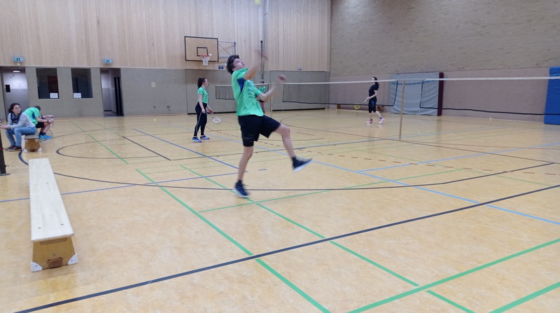 Spannend wurde es im 1. HE (Michael) und Mixed (Florian und Nadine). Beide Spiele gingen in den dritten Satz. Michael zeigte in seinem Einzel eine starke Leistung. Im ersten Satz verlor er zwar 17:21, drehte danach aber voll auf und gewann schließlich mit 21:12 und 21:16. Auch unser Mixed verlor den ersten Satz ziemlich deutlich mit 13:21, kämpften sich aber im zweiten Satz stark heran und gewannen mit 21:18. Leider ging ein spannender dritter Satz knapp mit 18:21 verloren.