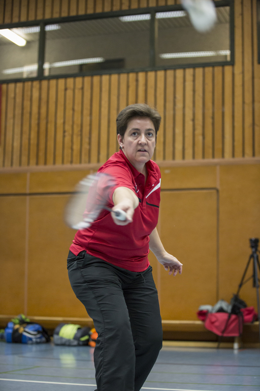 Das Dameneinzel bestritt Susanne Kuckertz gegen Katja Glaser. Susanne traf auf eine junge Spielerin die sofort zeigte wo es lang ging. Susanne, eigentlich nicht im Einzel, musste dagegenhalten, was nicht so gut gelang. Sie verlor beide Sätze sehr deutlich mit 7:21 und 4:21, aber wie gesagt es ist nicht Susannes Paradedisziplin. Die sollte mit dem Mixed noch kommen.