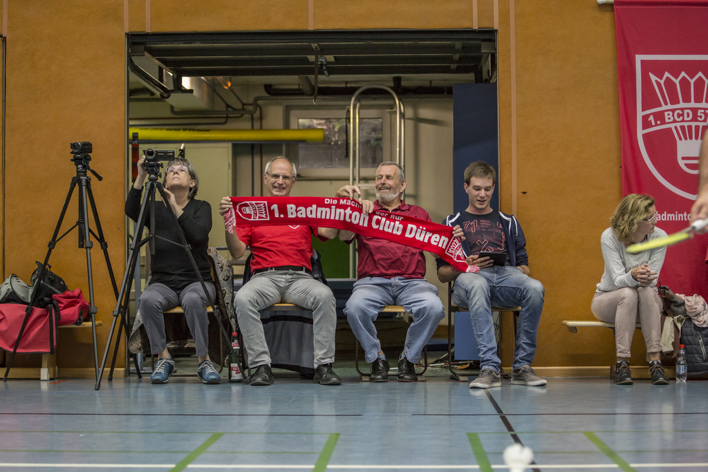 Im ersten Doppel spielten Max Gröbe und Kim Christian Kanwischer gegen Malte Brögger und Fabio Hosnofsky. Von Beginn an war es ein Spiel auf hohem Niveau. Der erste Satz war mit viel Spannung verbunden. Zur kleinen Pause mit einem Rückstand von 4:11, schaffte es Sascha Kuhlmann Max und Kim richtig zu motivieren. Sie zeigten ihr bestes Badminton und spielten sich schnell wieder ran. Mit viel Leidenschaft und Kampfgeist gelang es den ersten Satz mit 21:17 für sich zu entscheiden. Diese Spielweise versuchten sie auch in den zweiten Satz mitzunehmen, was auch zu Beginn sehr gut gelang. Jedoch besonnten sich die Beueler wieder auf ihre Stärken und rangen die Dürener mit 14:21 nieder. So musste der dritte Satz in diesem Spannenden Spiel die Entscheidung bringen. Auch hier ging es eine Zeit lang hin und her. Gegen Ende des Satzes gelang es den Bonnern davonzuziehen. Unsere Jungs versuchten alles wieder ranzukommen und wurden von den Zuschauern unterstützt. Am Ende reichte es nicht ganz und sie verloren den Satz mit 15:21.