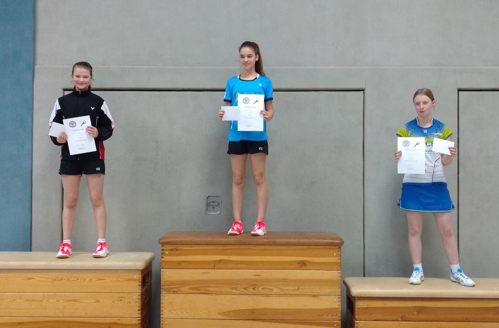 Julia hat ebenfalls die Qualifikation für die NRW-Rangliste erreicht. Nach einem relativ deutlichen Auftaktsieg gegen Michelle Werner vom TV Refrath, musste sich Julia im Viertelfinale gegen die befreundete Spielerin Sarah Heiden vom BC Rheinbach schon deutlich mehr reinhängen. Am Ende konnte sie sich gegen die athletisch starke U 15 (2) Spielerin aber ungefährdet mit 21:17 und 21:15 durchsetzen. Im Halbfinale musste Julia dann gegen ihre Doppelpartnerin Yuliana Keil vom BC Rheinbach antreten und es wurde das erwartet enge Match. Erst nach drei Sätzen (18:21, 21:17, 21:16) war Julia die glückliche Gewinnerin, denn mit dem Einzug in das Finale stand die Qualifikation für die NRW-Rangliste bereits fest. Dort musste Julia gegen die an 1 gesetzte Spielerin Selin Tuczu vom SV Bergfried Leverkusen antreten. Im ersten Satz konnte Julia sehr gut mithalten und gab den Satz nur äußerst knapp mit 22:24 ab. Im zweiten Satz fehlte ihr dann nach zwei anstrengenden Finalspiele und einer erst kürzlich überstandenen Erkältung die nötige Kraft, um weiter angreifen zu können, so dass der Satz deutlich mit 9:21 verloren ging. Mit einem verdienten zweiten Platz bei ihrem ersten U 15 Einzelturnier konnte Julia mehr als zufrieden die Heimreise antreten.