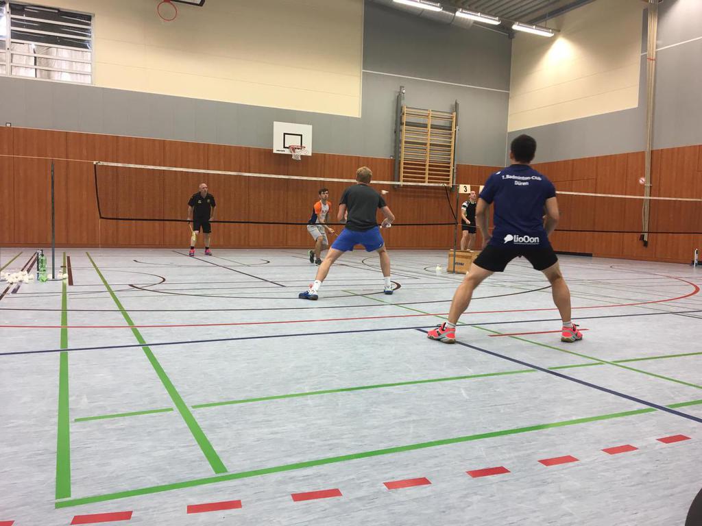 Die Herren, die in zwei unterschiedlichen Gruppen spielten gewannen Ihre Spiele in der Vorrunde ohne Probleme. Ly und Dominik ließen Ihre Gegner vom ASG-Elsdorf und einer Hobby-Paarung jeweils in zwei Sätzen hinter sich. Ninh und Arne gewannen ihre drei Spiele der Vorrunde gegen den TV-Kall, TuS Roisdorf und TVE Heinsberg auch jeweils in zwei Sätzen. Nach der Gruppenphase ging es für die Herren ins Achtelfinale. Arne und Ninh mussten sich hier leider gegen ihre Gegner des ASG-Elsdorf mit einem 17:21 und 14:21 geschlagen geben.